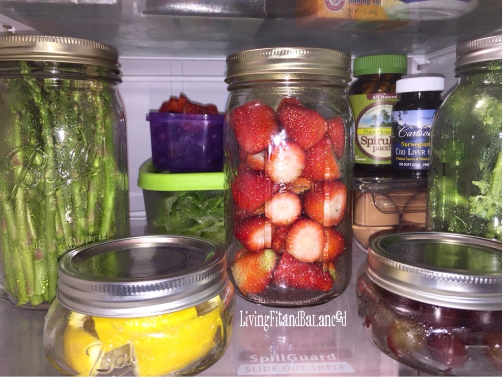 This is my quick tip for less waste. Plus I find that I eat more fruits and vegetables since they are clean and ready to eat. Instead of throwing all of my produce into the crisper drawers of the refrigerator I wash, chop and place in glass containers. Glass canning jars serve as a great cost effective storage tool.